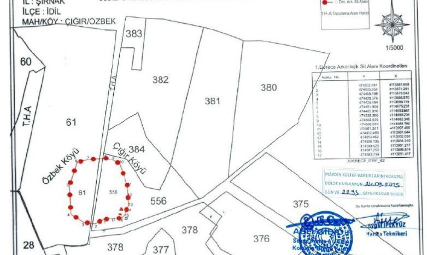 Çığır köyündeki tapulama harici alanlar ve özel mülkiyete ait 556 parsel ile Özbek köyündeki 61 parsel, 1’inci derece arkeolojik sit alanı olarak koruma altına alınacaktır. Bu parsellerin tapu kayıtlarına "Bir kısmı I. Derece Arkeolojik Sit Alanıdır" ibaresi eklenecektir.