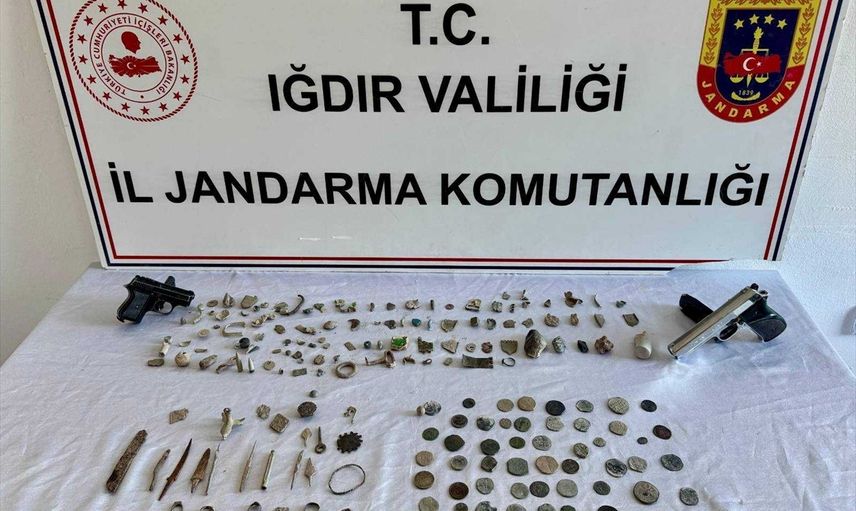 Iğdır'da, İl Jandarma Komutanlığı tarafından gerçekleştirilen bir operasyonda, tarihi eser niteliğindeki sikke ve objeler ele geçirildi.