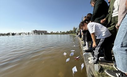 Iğdır'da, çocukların temsili olarak inşa ettiği Küresel Sumud Filosu gemileri, Millet Bahçesi'ndeki gölette suyla buluştu. Bu etkinlik, İsrail'in Filistin'de uyguladığı saldırılara karşı bir duruş sergilemek amacıyla düzenlendi.