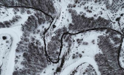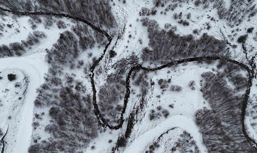 Ortaya çıkan güzellik havadan görüntülendi ve karla kaplı peyzajın geniş açılı fotoğrafları bölgenin doğal zenginliğini belgeledi.