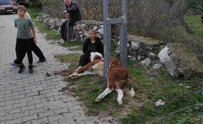 İkiztaş Mahallesi'nde aydınlatma direğine sıkışan buzağı kurtarıldı