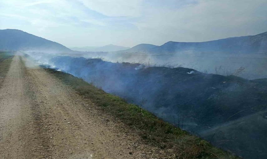 Burdur'un Bucak ilçesine bağlı İncirdere köyü yakınlarındaki sazlık alanda, öğle saatlerinde yangın başladı.