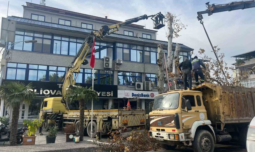 Belediye Başkanı Aytekin Kayanın talimatıyla harekete geçen ekipler, vinç kullanarak ağacın riskli dallarını büyük bir titizlikle kesti. Budama işlemi kimsenin zarar görmemesi için dikkatle yürütüldü ve çevredeki vatandaşlar çalışmayı merakla izledi.