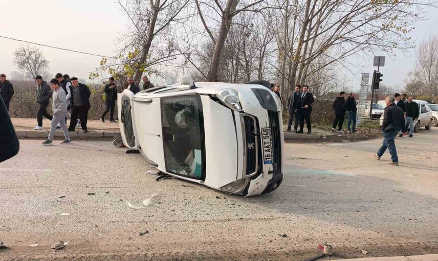 Çarpmanın etkisiyle 16 AAT 546 plakalı araç savrularak devrildi ve yan yattı. Kazada her iki aracın sürücüleri ile 16 CFM 27 plakalı araçtaki yolcular Ebru Ç. (34), Belinay Ç. (7), Batuhan Ç. (9), Emirhan Ç. (5) ve diğer araçtaki yolcu Mücahit G. (32) yaralandı. Toplamda 3'ü çocuk olmak üzere 7 kişi yaralanmış durumda.