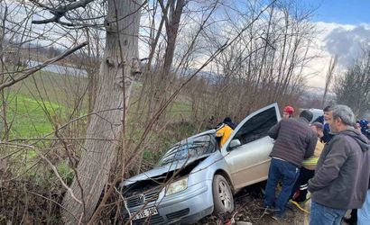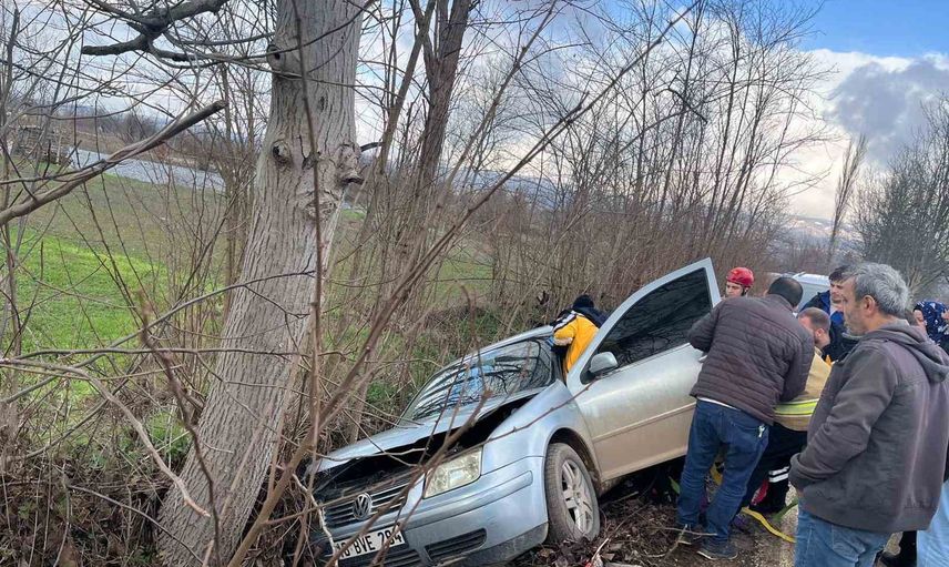 İnegöl'de otomobil kontrolden çıkarak ağaca çarptı