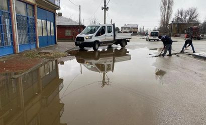Ekipler, tıkanan yağmur suyu giderlerini temizlemenin yanı sıra, suyun yağmur suyu bacalarına ulaşmadığı noktalarda küçük tahliye kanalları açarak yağmur sularının güvenli şekilde akışını sağlıyor.