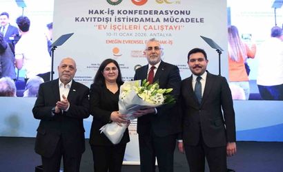 Çalışma ve Sosyal Güvenlik Bakanı Vedat Işıkhan, Antalya'da HAK-İŞ Konfederasyonu tarafından düzenlenen "Kayıtdışı İstihdamla Mücadele Ev İşçileri" çalıştayında konuştu. Program, saygı duruşu ve İstiklal Marşı'nın okunmasının ardından HAK-İŞ'in 50. Yıl Filmi ile devam etti. Açılışta Hizmet-İş Sendikası Komitesi Başkanı Hatice Ayhan, HAK-İŞ Kadın Komitesi Başkanı Fatma Zengin ve HAK-İŞ Genel Başkanı Mahmut Arslan da konuştu.