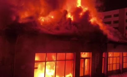İskenderun'da akaryakıt istasyonu yanındaki bina kül oldu