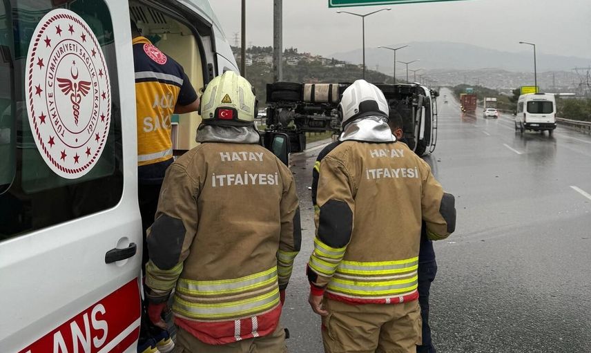 Hatay'ın İskenderun ilçesinde, Adana - Hatay otoyolu Akçay Mahallesi mevkiinde yağmurun yol açtığı kayganlaşma nedeniyle kontrolden çıkan bir tır devrildi. Kazada araç sürücüsü yaralandı.