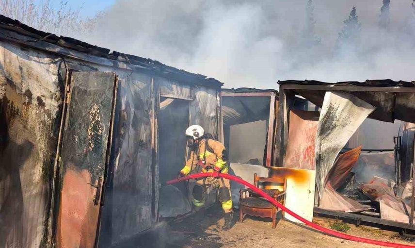 İskenderun'da konteyner yatakhane alevlere teslim oldu