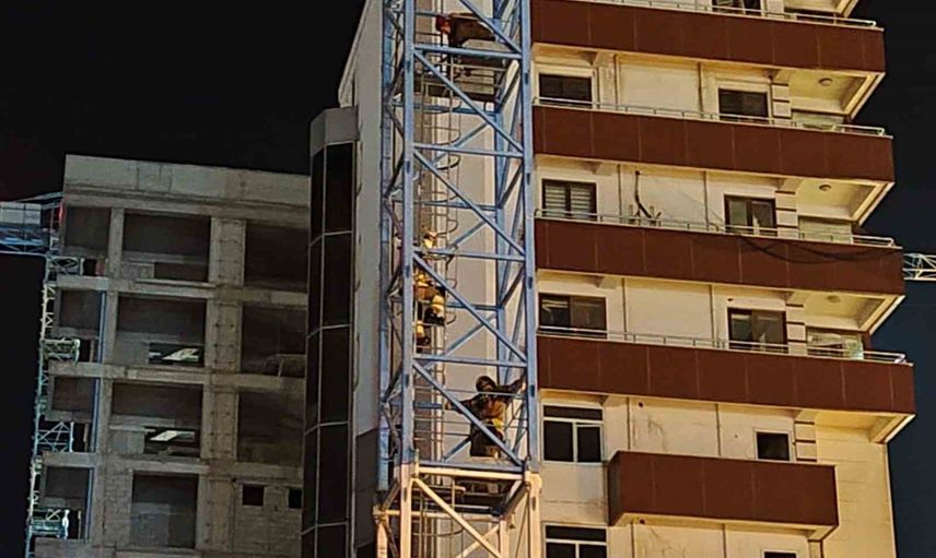 İskenderun'da vinçe çıkan şahıs itfaiye ekiplerince ikna edildi