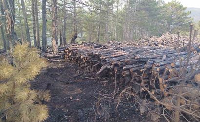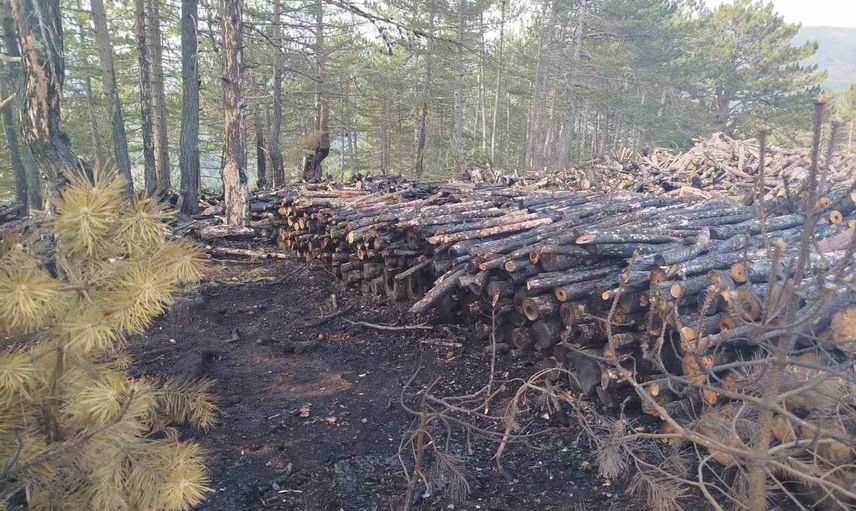 Çorum'un İskilip ilçesine bağlı Karmış ve Karaçukur köyleri arasındaki orman kesim alanında çıkan yangında yaklaşık 80 ster çam ağacı zarar gördü.