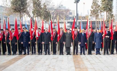 Kapalı Çarşı'daki İnönü Anıtı önünde düzenlenen törene protokol üyeleri ve siyasi temsilciler katıldı