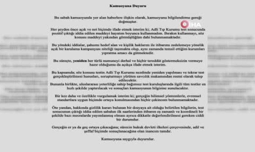 İstanbul Cumhuriyet Başsavcılığı, Fenerbahçe Spor Kulübü Başkanı Saadettin Saran'ın özel bir laboratuvarda test yaptırdığı ve sosyal medyada bu testin temiz çıktığı yönündeki haberlerle ilgili açıklama yaptı.
