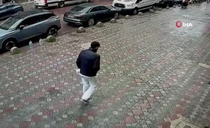 Zeytinburnu'nda yoldan geçen vatandaş düşen saksıdan saniyelerle böyle kurtuldu