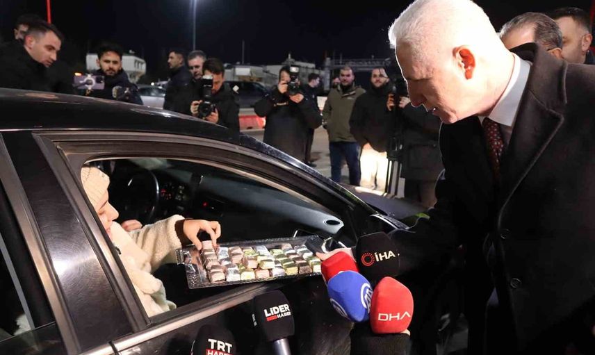 Geçiş yapan vatandaşların yeni yıllarını tebrik eden Vali Gül, görevli ekiplere teşekkür etti ve köprüdeki vatandaşlara çikolata ikramında bulundu.