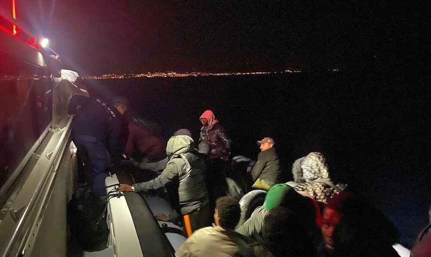İZMİR AÇIKLARINDA 25 KASIM SABAHI ARKA ARKAYA GERÇEKLEŞTİRİLEN OPERASYONLARDA SAHİL GÜVENLİK, SELÇUK AÇIKLARINDA İHA TESPİTİYLE 23 DÜZENSİZ GÖÇMENİ YAKALARKEN, FOÇA AÇIKLARINDA YUNANİSTAN UNSURLARINCA GERİ İTİLEN BOTTAKİ 20 DÜZENSİZ GÖÇMENİ İSE KURTARDI.