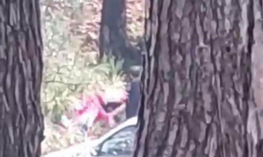 İzmir'in Buca ilçesindeki ormanlık bir alanda, kimliği belirsiz bir kişinin bir kadını darbettiği anlar cep telefonu kamerasına yansıdı.