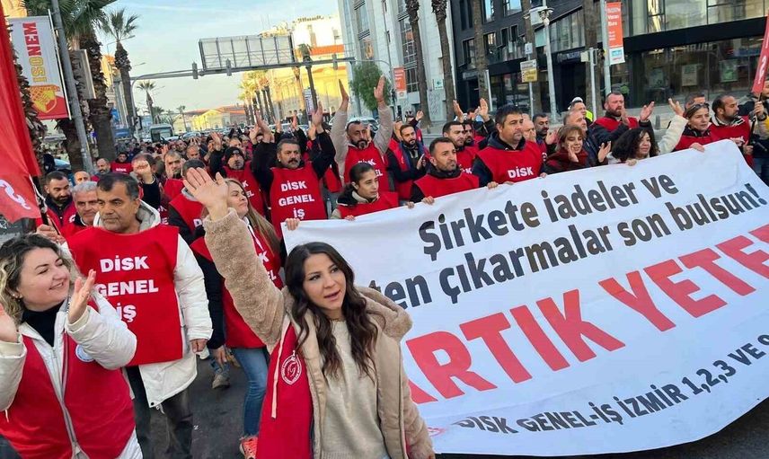 İZMİR’DE BELEDİYE ŞİRKETLERİNDE ÇALIŞAN İŞÇİLER, ÖDEME KRİZİ VE İŞTEN ÇIKARMALARA KARŞI YÜRÜYÜŞLERİNİ ÜÇÜNCÜ GÜNDE DE SÜRDÜRDÜ.