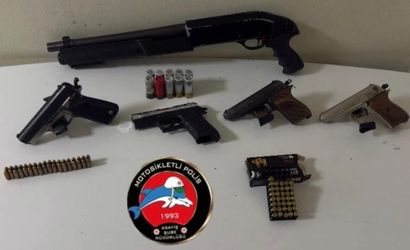 Yapılan aramalarda; 12 adet ruhsatsız tabanca, 6 adet ruhsatsız pompalı tüfek ve 9 adet kurusıkı tabanca ele geçirildi.