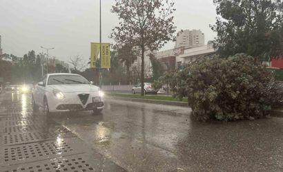 İzmir'de sabah saatlerinde etkili olan kuvvetli sağanak yağış ve fırtına günlük yaşamı olumsuz etkiledi. Şiddetli rüzgarın etkisiyle yol kenarındaki ağaçlar devrildi, 5 araç zarar gördü; ulaşım hizmetlerinde aksamalar yaşandı.