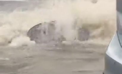 Yağış nedeniyle sularla kaplanan bir yolda yaşanan zor anlar bir iş yerinin güvenlik kamerası tarafından kaydedildi. Görüntülerde, yoldaki suyun bulanıklığı nedeniyle görünmeyen bir çukura basan bir vatandaşın dengesini kaybedip suyun içinde kaldığı anlar yer aldı. Yağışın etkisi kent genelinde devam ediyor.