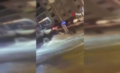Bir caddede akıntının sürüklediği bir yaya, çevredeki polis ekipleri ile bir vatandaşın müdahalesiyle kurtarıldı. O anlar bir vatandaşın cep telefonu kamerasına yansıdı ve yaşanan can pazarı böyle görüntülendi.