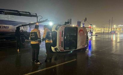 İzmit'te meydana gelen trafik kazasında, bir panelvan ile çarpışan ambulansın devrilmesi neticesinde 3'ü sağlık çalışanı olmak üzere 6 kişi yaralandı.