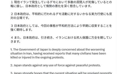 Sanae Takaichi, sosyal medya platformu X üzerinden yaptığı paylaşımda İran’daki gösterilerin 28 Aralık tarihinden bu yana devam ettiğini anımsatarak, protestolarda çok sayıda sivilin hayatını kaybettiği veya yaralandığına dair haberler olduğuna dikkat çekti. Takaichi, "Japonya hükümeti, İran’daki kötüleşen durumdan derin endişe duymaktadır" ifadelerini kullandı.