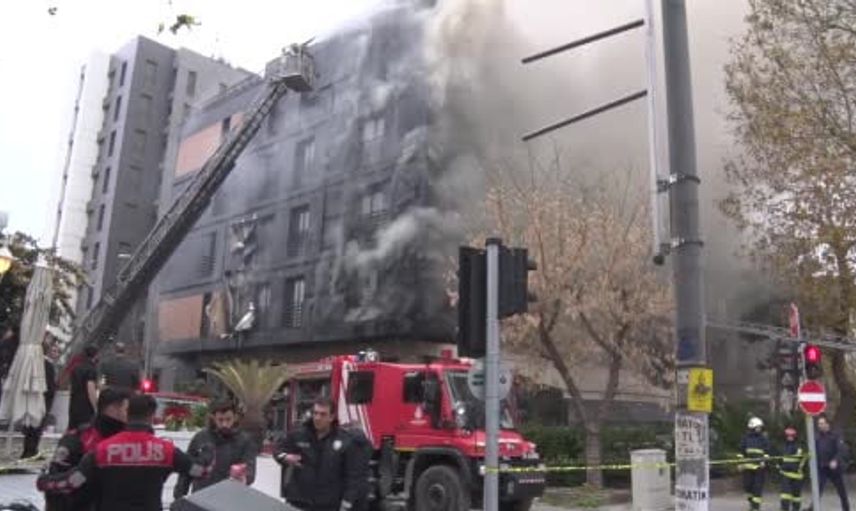 Kadıköy Bağdat Caddesi'nde beş katlı binanın dış cephesinde yangın