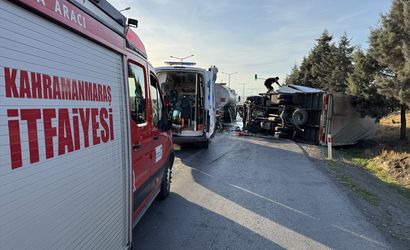 Kahramanmaraş'ın Onikişubat ilçesinde akaryakıt tankerine çarpan kamyonun sürücüsü hayatını kaybetti.