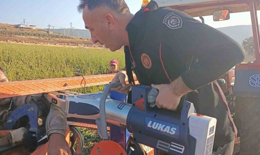 KAHRAMANMARAŞ'TA ARAZİDE ÇALIŞIRKEN KOLU HORTUM SARMA MAKİNASINA SIKIŞAN BİR KİŞİ İTFAİYE EKİPLERİNCE KURTARILDI.