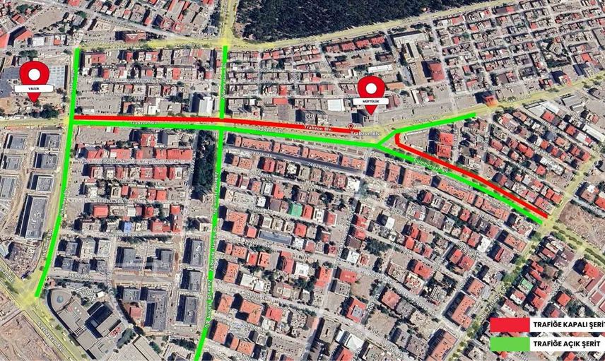 KAHRAMANMARAŞ BÜYÜKŞEHİR BELEDİYESİ, TRABZON BULVARI GERÇEKLEŞTİRİLECEK ALT VE ÜSTYAPI İMALATLARI NEDENİYLE BULVARIN MÜFTÜLÜK BİNASINDAN VALİLİK BİNASINA GİDİŞ ŞERİDİNİN 7 OCAK TARİHİNE KADAR TRAFİĞE KAPALI OLACAĞINI DUYURDU.