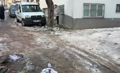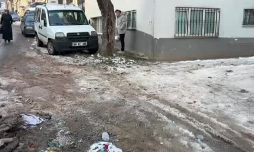 Olay anı çevredekiler tarafından merakla izlendi ve cep telefonu kameralarına yansıdı. Durumu yaşayan kiracı Aynur Meşe, 'Ben bu evde kiracıyım, su enerjiden akıyor ve kapısı da üst kattan gidiliyor. Malum soğuk ve dondan dolayı sular kesik' dedi.
