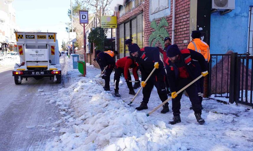 Adıyaman'ın Kahta ilçesinde artan kar yağışı ve buzlanma nedeniyle Kahta Belediyesi ekipleri sahada aralıksız çalışmalarını sürdürüyor.