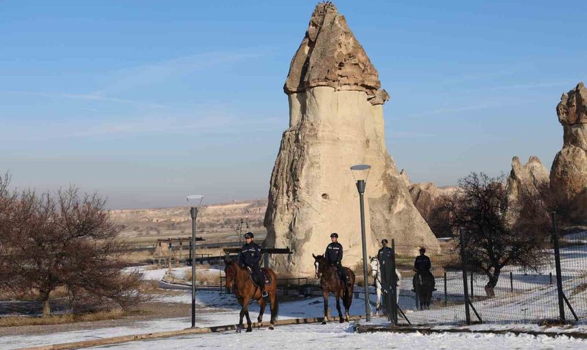 Kapadokya'nın doğal ve kültürel dokusuna uygun şekilde görev yapan atlı jandarma timleri, bölge sakinleri ve ziyaretçiler için güvenlik hissini güçlendirirken, aynı zamanda bölgenin simgelerinden biri haline gelerek ziyaretçilerin ilgisini çekiyor.
