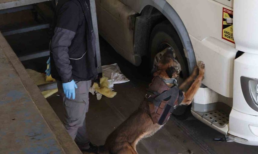 Edirne sınırındaki Kapıkule Sınır Kapısı'na giriş yapmak üzere olan bir tır, risk analizi sonucu X-ray taramasına sevk edildi. Tarama ve dedektör köpekleri eşliğinde yapılan detaylı aramada, araçta 50 paket halinde toplam 144 kilo 732 gram esrar bulundu.