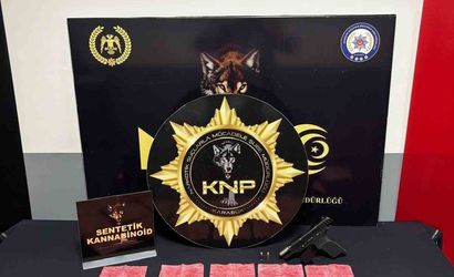 Diğer bir operasyonda B.D. ve S.U. isimli iki şüphelinin üzerinde 17 parça, peçeteye emdirilmiş 3 bin 728 içimlik 45,75 gram sentetik kannabinoid ile 1 tabanca ve 2 fişek ele geçirildi.