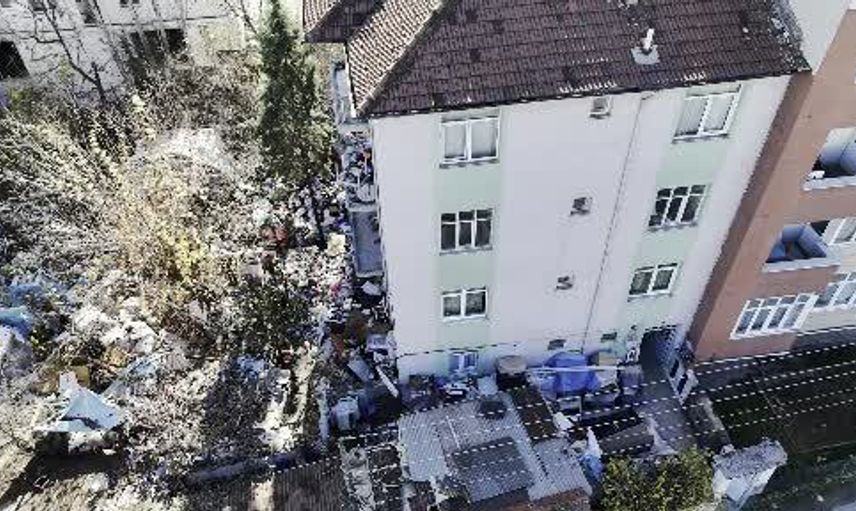 Temizlik çalışmaları kapsamında ev ve bahçeden yaklaşık 10 kamyon çöp çıkarıldı. Bölgedeki görüntüler drone ile kaydedildi.