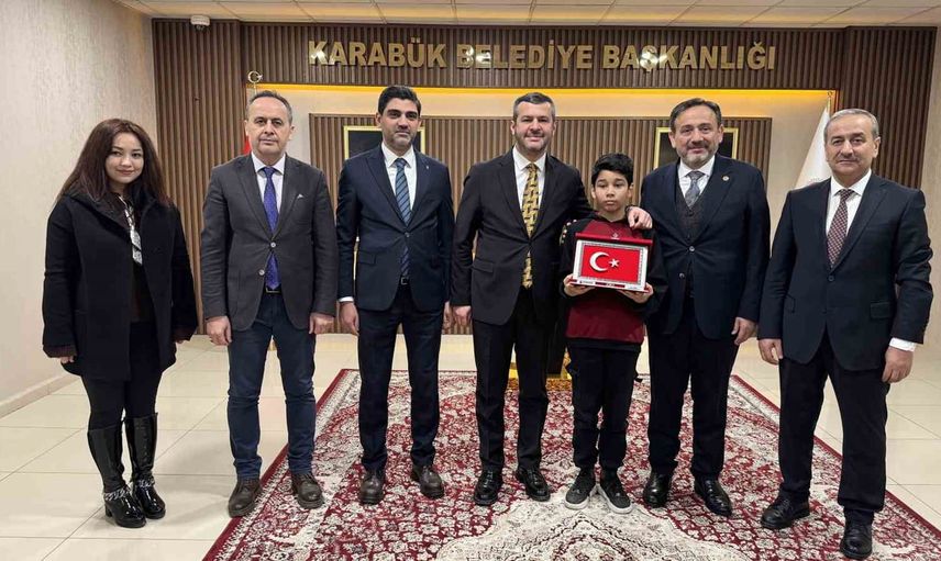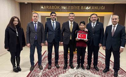 KARABÜK'TE KAR YAĞIŞI ALTINDA İSTİKLAL MARŞI'NA SAYGI DURUŞUNDA BULUNAN TÜRKMENİSTAN UYRUKLU 12 YAŞINDAKİ ÖĞRENCİ, ÖRNEK DAVRANIŞI NEDENİYLE BELEDİYE BAŞKANI ÖZKAN ÇETİNKAYA TARAFINDAN ÖDÜLLENDİRİLDİ.