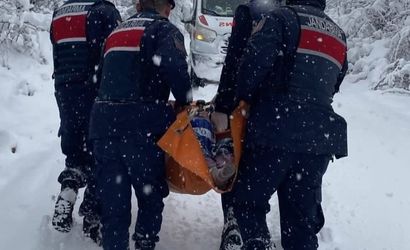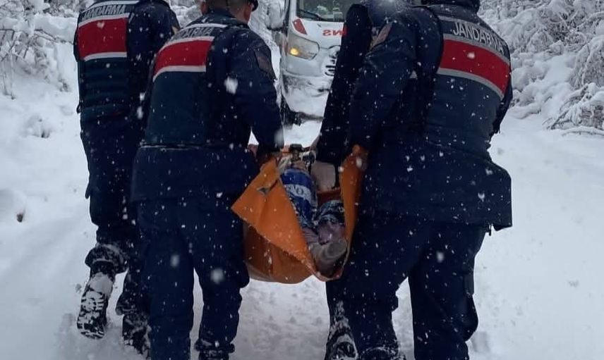 Karabük'te etkili olan kar yağışı sırasında Safranbolu'ya bağlı Aşağıgüney köyünde yaşayan bir hasta vatandaşa jandarma ekipleri ulaştı ve sağlık ekiplerine teslim etti.