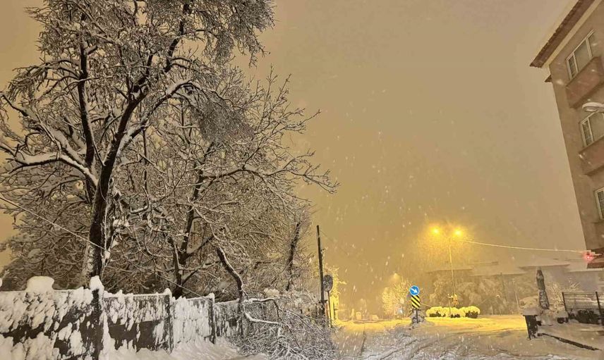Karabük'ün Safranbolu ilçesinde akşam saatlerinden itibaren kesintisiz devam eden kar yağışı, birçok noktada ağaç dallarının karın ağırlığına dayanamayarak kırılmasına neden oldu.