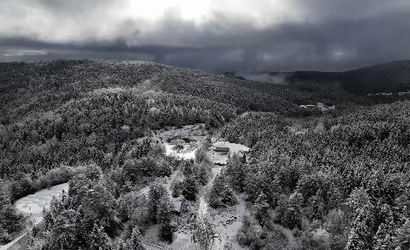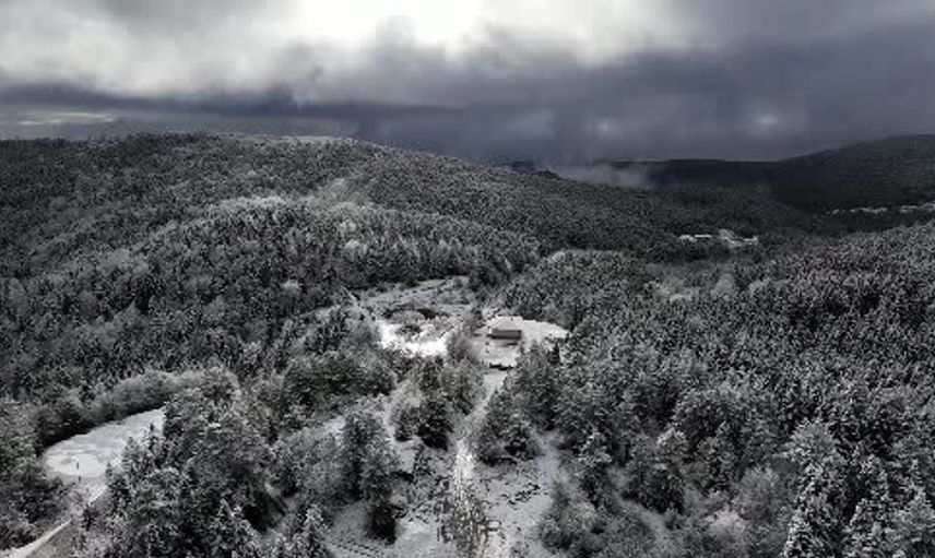 Kar yağışının etkili olduğu ormanlık alanlarda oluşan doğal güzellikler havadan görüntülendi. Karla kaplanan ağaçlar ve geniş beyaz örtü, izleyenlere seyirlik manzaralar sundu.