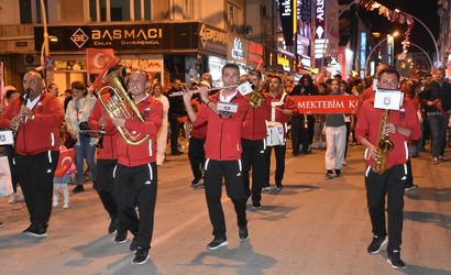 Yerli vatandaşlar ve protokol üyeleri, belediye bandosu eşliğinde 15 Temmuz Aktekke Demokrasi Meydanı'na doğru yürüyüş yaptı. Yürüyüş esnasında Türk bayrakları ve meşalelerin taşındığı görülüyordu.