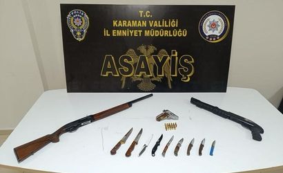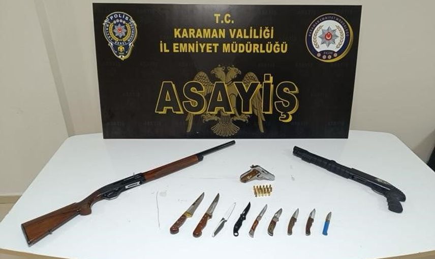 KARAMAN'DA POLİSİN YAPTIĞI UYGULAMALARDA 5 BİN 307 ADET UYUŞTURUCU HAP İLE RUHSATSIZ TÜFEKLER ELE GEÇİRİLİRKEN, ARANAN 6 ŞAHIS TUTUKLANDI.