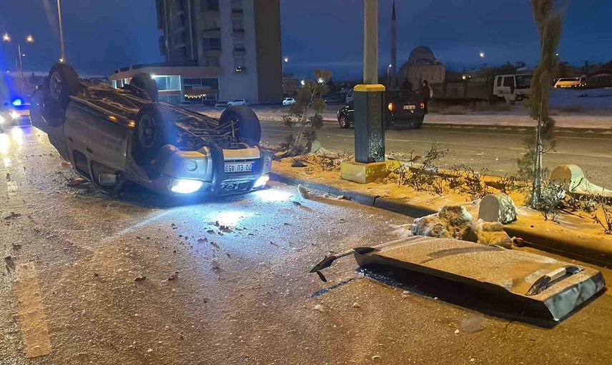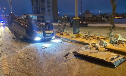 Karaman'da buzlanma kamyonetin devrilmesine yol açtı