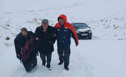 Karaman’da etkili olan kar yağışı sırasında, merkeze bağlı Güldere köyü yolunda iki otomobilde bulunan 4 kişi yolda mahsur kaldı.