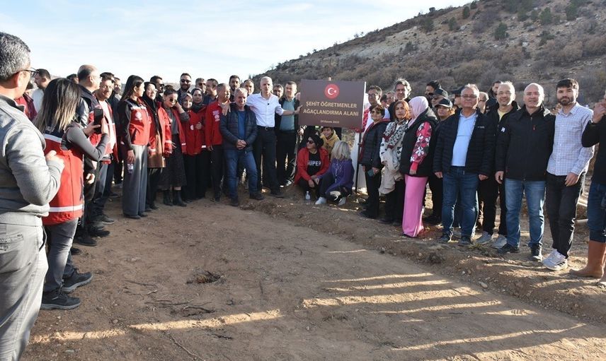 Konuşmaların ardından Vali Mehmet Fatih Çiçekli, İl Milli Eğitim Müdürü Mehmet Çalışkan, öğretmenler ve öğrenciler birlikte fidanları toprakla buluşturdu. Öğretmenler Günü’nün kalıcı bir anısı olarak hazırlanan alana farklı türlerde fidanlar dikildi.