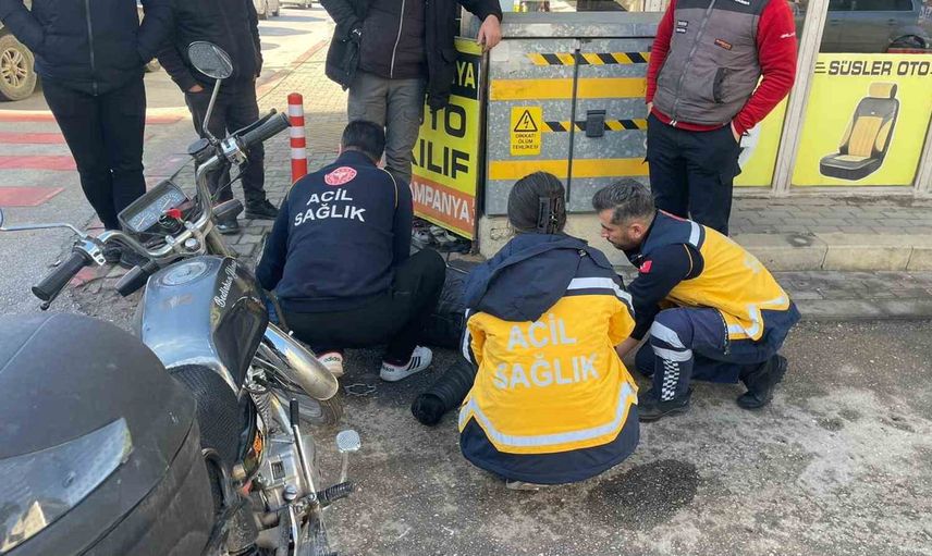 Çarpışmanın etkisiyle motosiklet sürücüsü yola savrularak yaralandı. Olay anı, bir iş yerinin güvenlik kamerasına yansırken; görüntülerde sürücünün savrulduğu anlar yer aldı.