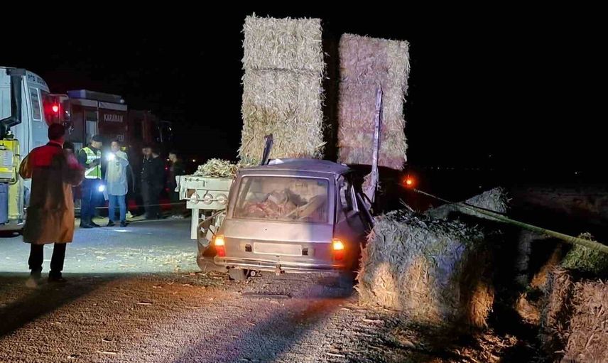 Karaman'da otomobil mısır sapı yüklü tıra çarptı: Karı-koca yaşamını yitirdi